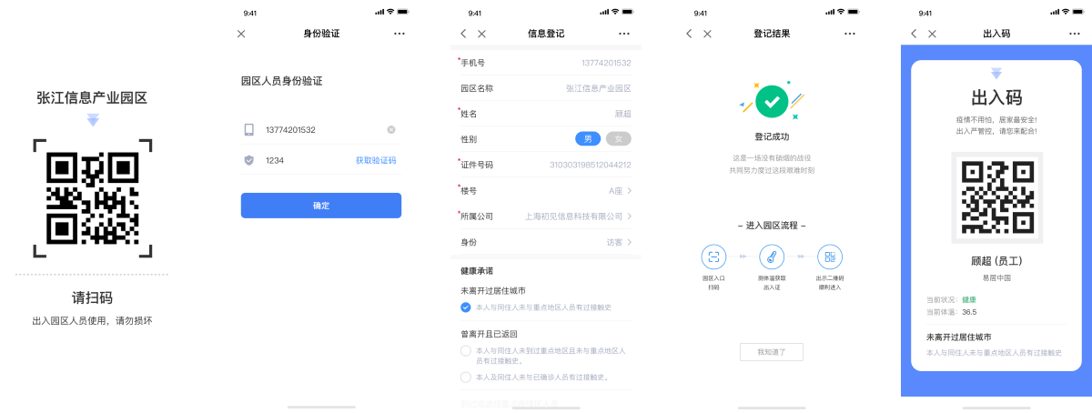 健康信息在线登记,电子出入码,无接触通行